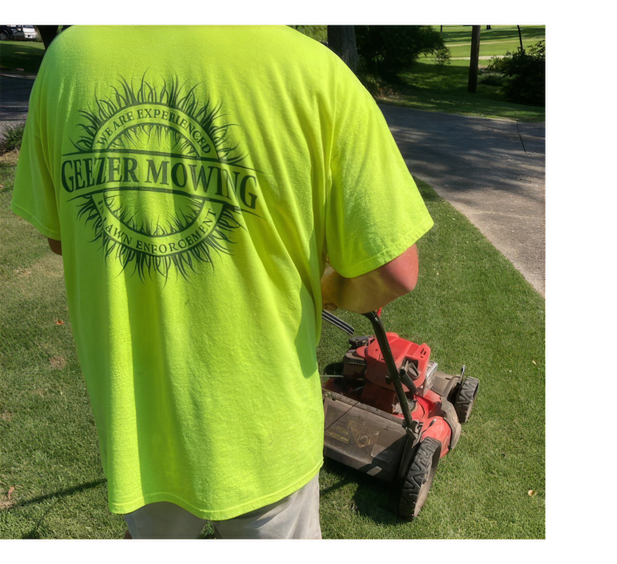 And that’s how we began. We’re all retirement-age guys but God has blessed us with good health so far, and we want to help others as long as we physically can. At our age, we see how important it is to serve others, so it’s a joy to do this. We’ve now grown to a group of four guys, and just for fun, we bought t-shirts with our Geezer Mowing logo and our slogan, “We are experienced in lawn enforcement.”